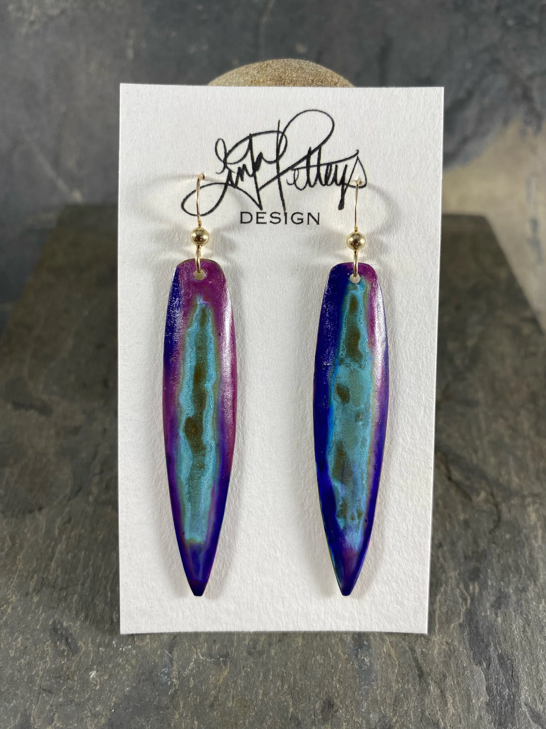 Your handcrafted jewelry has had multiple coats of the highest quality sealer applied to protect its' finish. To maintain the beauty of your wearable art~ Keep it dry. Please remove before bathing, swimming, sweating (if piece is in contact with skin) and before using any skin, cleaning or hair products. Consider and up-do if hair is saturated in product. Avoid hot steam when wearing piece. Store in a clean dry space and keep jewelry free from other metals that may scratch it.